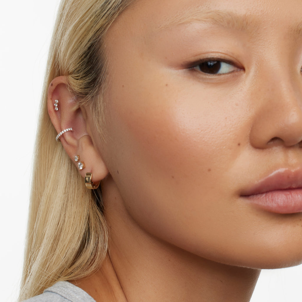 cluster studs, duo studs, bar studs, diamond studs, cartilage studs, cartilage hoops, pave huggie hoops, classic huggie hoops, hoop earrings and much more.