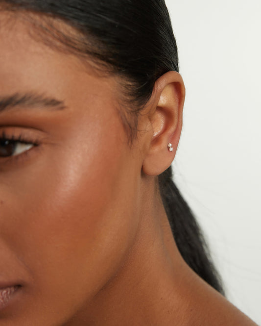 Each piece is handcrafted in solid gold and adorned with diamonds or gemstones, offering endless ways to personalise your piercings. Simply unscrew your existing front and replace it with a new design to transform your look in seconds.