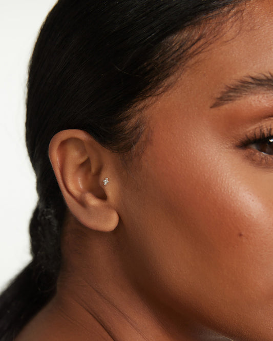 Discover earrings designed for the Forward Helix. A Forward Helix is placed on the outer (usually upper) cartilage closest to your face, directly above the Tragus. Double Forward Helix piercings – or even triple – allow you to achieve a truly unique ear curation. Considering the options to customise your jewellery are endless, a Forward Helix piercing has the potential to be a truly individual statement.