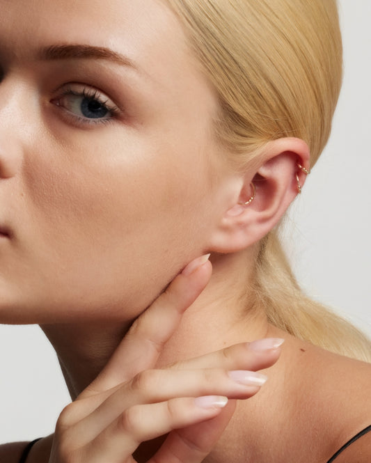 Discover earrings designed for a Rook piercing. Rook piercings are among the more modern piercing placements. Nestled in the cartilage fold that’s located right beneath the Helix. This piercing is bold when alone – or even braver in cartilage clusters or constellation piercings. Make way for self-expression.