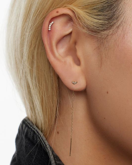 Crafted from solid gold, each threader features a secure stud on one end, allowing you to effortlessly weave the fine chain through multiple piercings, creating a custom drape that fits your vibe. Whether styled as a sleek drop, looped through a lobe, or worn asymmetrically, these high-end threader earrings are designed for creative self-expression. Perfect for layering or standing alone as a minimalist statement, Covetear threaders redefine sophisticated rebellion with timeless craftsmanship and piercing jewelry innovation.