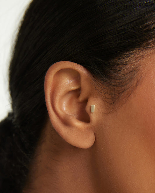 Discover earrings designed for a Tragus piercing. The Tragus is the part of the ear that attaches to the side of the face and protrudes into the centre of the ear, partially covering the ear canal. Though every piercing is different, there's something about a snug-fitting tragus hoop or minimalist stud that thoroughly complements existing ear piercings — or provides an exciting first one.