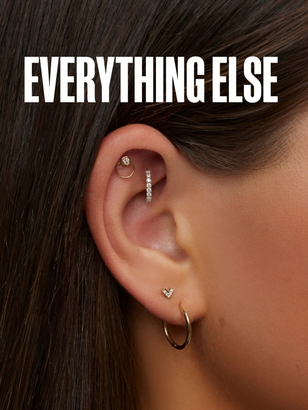 - 14k white gold: White gold naturally contains a higher level of nickel (around 3–7%) to achieve its colour. To make it suitable for piercings, we finish every piece with a 2.5 micron layer of hypoallergenic rhodium plating, which acts as a protective barrier between the metal and the skin.